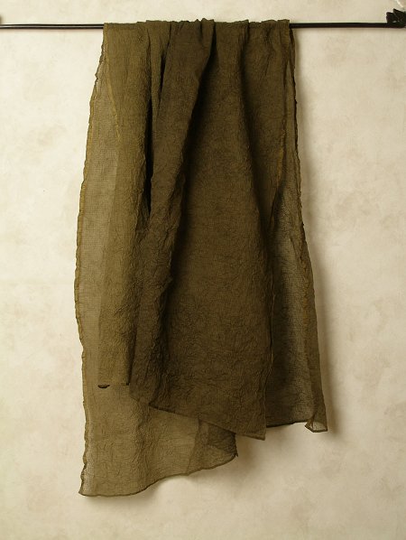 ライクラと呼ばれるポリウレタン素材を織り込むことにより伸縮性を持たせたスカーフ。薄く軽くふわっとした感触のやさしい感じのスカーフです!■素材:絹98%, ポリウレタン2%■サイズ:幅30?55cm, 長さ175cm 色:グリーン/茶系 ■原産国:インド 他のデザインを見る!※多少色落ちする場合がありますので、お洗濯は単独で行ってください。