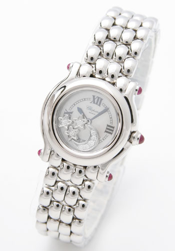 連休限定特価★【5年保証】ショパール ハッピースポーツ ムーン&スターダイヤ ルビー ホワイトシェル レディース 27/8250-21価格: 482,040円レビュー評価: 0.0 レビュー数:0 お問合せ 0120-766-444(平日10時?18時)よくある質問集→詳細を見るまるで夜空を思わせるようなムーン&スターダイヤ。シェル文字盤は受ける光の角度によって様々な表情を見せます。ケースサイドにはルビーがあしらわれ、見ているだけで愛しい気持ちにさせてくれそう。揺れるダイヤモンドがとてもキュート。沢山の光を受けて輝くブレスは鏡面(艶有り)仕上げで、身に付けると心地よいフィット感を与えてくれます。バックルは両開きのタイプで取り外しに手間を取られることもありません。裏蓋には大きくChopardのロゴが。ロゴの下には『HAPPY SPORT』と記されています。裏蓋からもちらりと見えるルビーが |