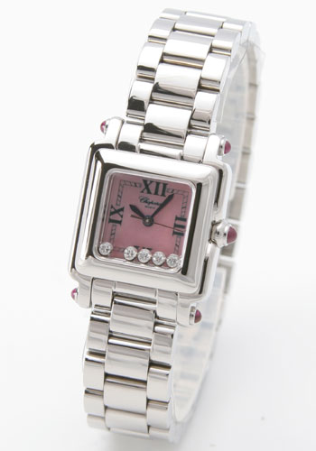 連休限定特価★【5年保証】ショパール ハッピースポーツ スクエア 5Pダイヤ ルビー ピンクシェル レディース 27/8893-21価格: 495,507円レビュー評価: 0.0 レビュー数:0 お問合せ 0120-766-444(平日10時?18時)よくある質問集→詳細を見る5粒のダイヤモンドが文字盤の上を揺れながらキラキラと流れます。さらにシェル文字盤が光を反射しながら様々な表情に。ケースサイドにはルビーがバランスよくあしらわれ、可愛らしさの中に高級感漂うデザインになっています。沢山の光を受けて輝くブレスは鏡面(艶有り)仕上げで、身に付けると心地よいフィット感を与えてくれます。バックルは両開きのタイプで取り外しに手間を取られることもありません。裏蓋には大きくChopardのロゴが。ロゴの下には『HAPPY SPORT』と記されています。裏蓋からもちらりと見えるルビーがさりげないア |