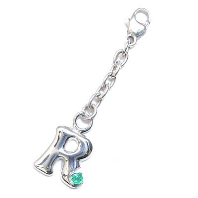 【Myプレシャスチャーム】私だけのプレシャスチャーム私のイニシャルに幸せのお誕生石がついたからいつも身に付けて自分に自信が持てちゃうダブルでハッピーなチャーミングアイテムです。携帯ストラップにも、ポーチのファスナーにも、ブレスレットにも可愛い、さりげなく私をアピールしちゃうキュートなプチアクセサリー。プレゼントに最適。イニシャル「R」 イニシャルモチーフ5月の誕生石(エメラルド)送料無料 保証書付チェーン部分長さ 約 2.5cm シルバー エメラルドトップ部分の大きさ タテ約 11mm×ヨコ約 12mmお好きな誕生石をクリックしてください。1月ガーネット2月アメジスト3月アクアマリン4月ダイヤ