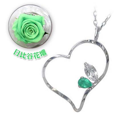 誕生石色バラ付ジュエリー今ならポイント最大5倍!(10月13日 09:59まで )◆( 5月誕生石 ) K10ホワイトゴールド エメラルドペンダントネックレス(ハートモチーフ)(日比谷花壇誕生色バラ付