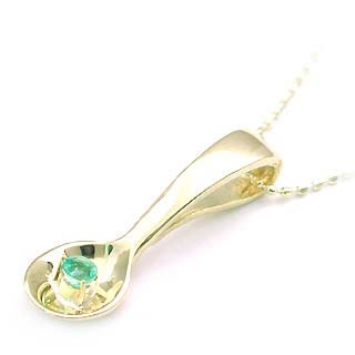 キュートなスプーンに幸せを呼ぶ誕生石を入れた可愛らしいネックレス。個性豊なおしゃれやプレゼントに最適。5月の誕生石(エメラルド)送料無料 保証書付。ネックレス K18 約 40cm エメラルドペンダントトップ タテ約 22mm×ヨコ約 6mmお好きな誕生石をクリックしてください。1月ガーネット2月アメジスト3月アクアマリン4月ダイヤモンド5月エメラルド6月ムーンストーン 7月ルビー8月ペリドット9月サファイヤ10月トルマリン11月トパーズ12月タンザナイト