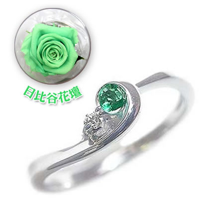 誕生石色バラ付ジュエリー今ならポイント最大5倍!(10月13日 09:59まで )◆( 5月誕生石 ) K18ホワイトゴールドエメラルドリング(婚約指輪・エンゲージリング)(日比谷花壇誕生色バラ付)【