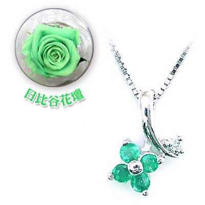 誕生石色バラ付ジュエリー今ならポイント最大5倍!(10月13日 09:59まで )◆( 5月誕生石 ) K18WG エメラルドネックレス(日比谷花壇誕生色バラ付)【k4u5643】【cr6tx74】