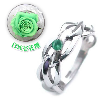 誕生石色バラ付ジュエリー今ならポイント最大5倍!(10月13日 09:59まで )◆( 5月誕生石 ) SV エメラルドリング(日比谷花壇誕生色バラ付)【k4u5643】【cr6tx74】
