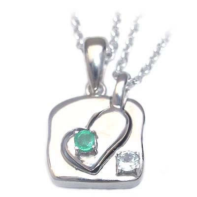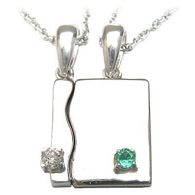 胸元を飾るペアペンダント今ならポイント最大5倍!(10月13日 09:59まで )◆( 4月・5月誕生石 ) シルバー ダイヤモンド・エメラルドペアペンダントネックレス★送料無料【k4u5643】【c