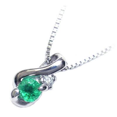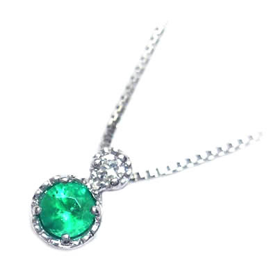 オシャレなモチーフが幸せの誕生石をそっと包み込む。個性豊なおしゃれやプレゼントに最適。5月の誕生石(エメラルド)送料無料 保証書付。ネックレス K18WG 約 40cm エメラルドペンダントトップ タテ約 5mm×ヨコ約 5mmお好きな誕生石をクリックしてください。1月ガーネット2月アメジスト3月アクアマリン4月ダイヤモンド5月エメラルド6月ムーンストーン 7月ルビー8月ペリドット9月サファイヤ10月トルマリン11月トパーズ12月タンザナイトプレゼントジュエリーのトップページへ