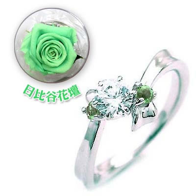 誕生石色バラ付ジュエリー今ならポイント最大5倍!(10月13日 09:59まで )◆( 5月誕生石 ) スィートテン K18ホワイトゴールド エメラルド・ダイヤモンドリング★送料無料(日比谷花壇誕生色