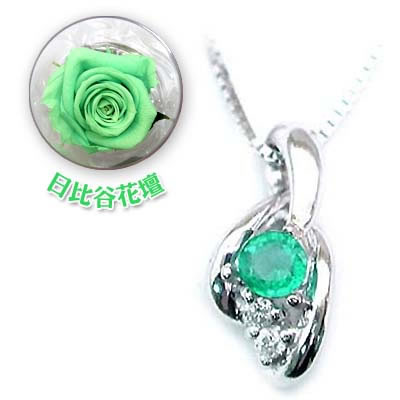 誕生石色バラ付ジュエリー今ならポイント最大5倍!(10月13日 09:59まで )◆( 5月誕生石 ) シルバー エメラルドペンダントネックレス★送料無料(日比谷花壇誕生色バラ付)チャリティ対象商品【