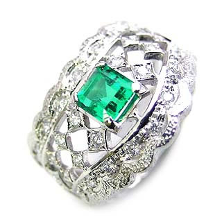 鮮やかに輝くエメラルドをセッティング。サイドのパヴェダイヤがゴージャス。レディの装いにぴったり。送料無料 保証書付。Pt900 エメラルド0.96ct ダイヤモンド0.60ctデザインリング のトップページへとびっきり素適なプレゼントギフトラッピングにオリジナルショッピングバックを添えてお届け致します。