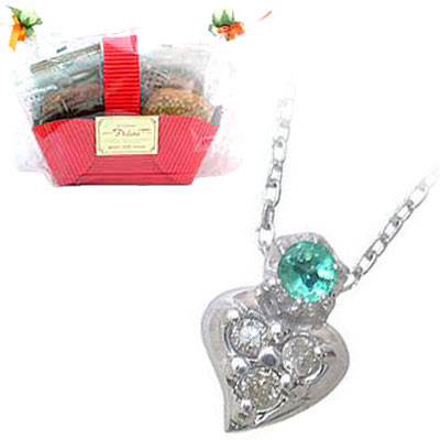 彼女が大好きな人気のスウィーツ。パティシエクッキー。可愛い彼女に想いが伝わるホワイトデー。クッキーと同じ位、貴方の優しく甘い想いが届くように素材と技術にこだわってパティシエが心を込めて焼き上げた10枚のクッキーを、ホワイトデー用包装の可愛いクッキーバスケットに詰めました。最高級のジュエリーとパティシエクッキーをご一緒にお届けします。豪華モチーフに幸せの誕生石を入れたプチペンダント。個性豊なおしゃれやプレゼントに最適。5月の誕生石(エメラルド)送料無料 保証書付。ネックレス K18WG 約 40cm エメラルド ダイヤモンド 0.10ctペンダントトップ タテ約 9mm×ヨコ約 15mmお好きな