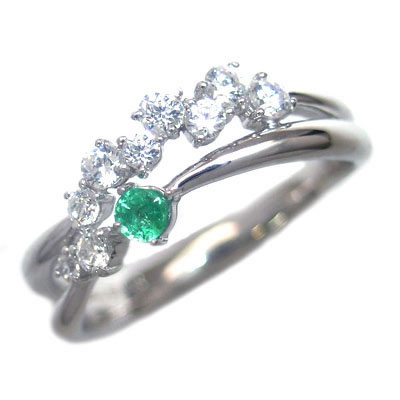 指先を飾るバースディリング今ならポイント最大5倍!(10月13日 09:59まで )◆( 5月誕生石 ) スィートテン K18ホワイトゴールド エメラルド・ダイヤモンドリング【Mother's-Dia