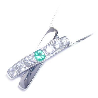 永遠の感謝を誕生石に込めて。今ならポイント最大5倍!(10月13日 09:59まで )◆( 5月誕生石 ) K18ホワイトゴールドエメラルド・ダイヤモンドペンダントネックレス【Mother's-Dia