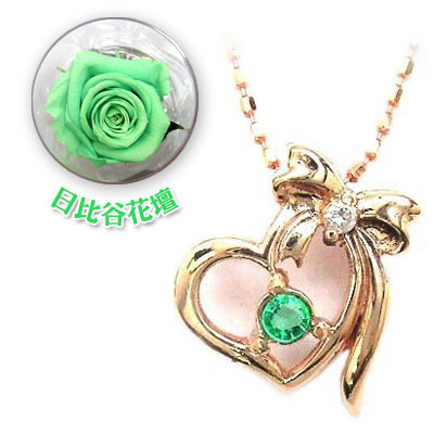 誕生石色バラ付ジュエリー今ならポイント最大5倍!(10月13日 09:59まで )◆( 5月誕生石 ) K10ピンクゴールド エメラルドペンダントネックレス(日比谷花壇誕生色バラ付)【k4u5643】